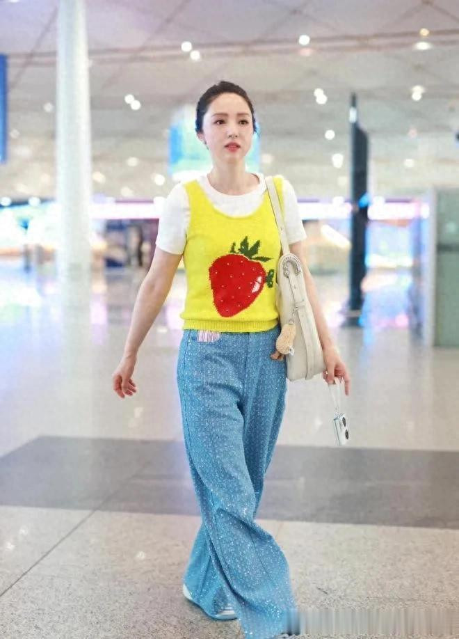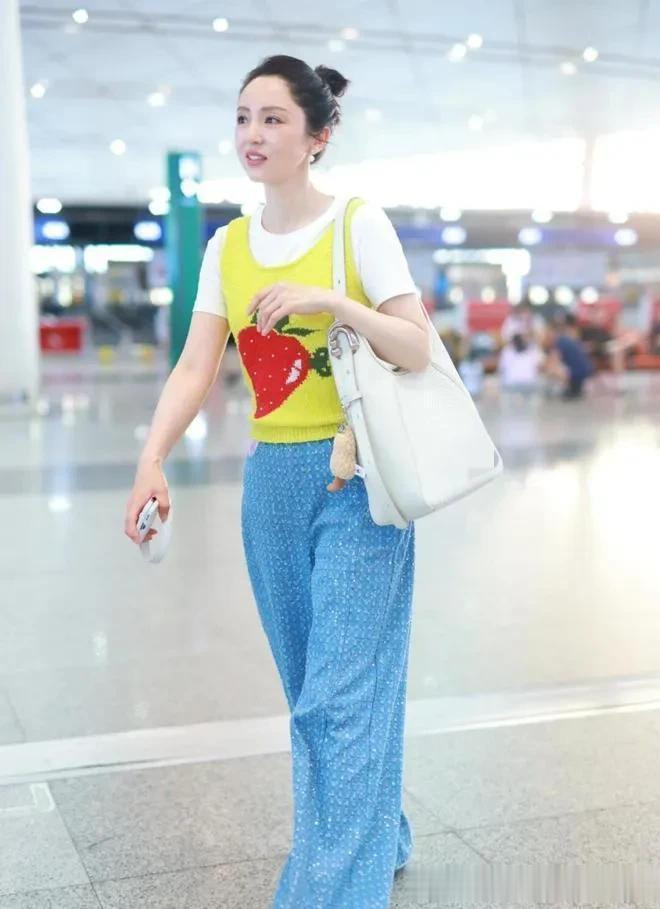 董璇真是穿搭高手! 短袖+背心+阔腿裤, 减龄又时髦!
